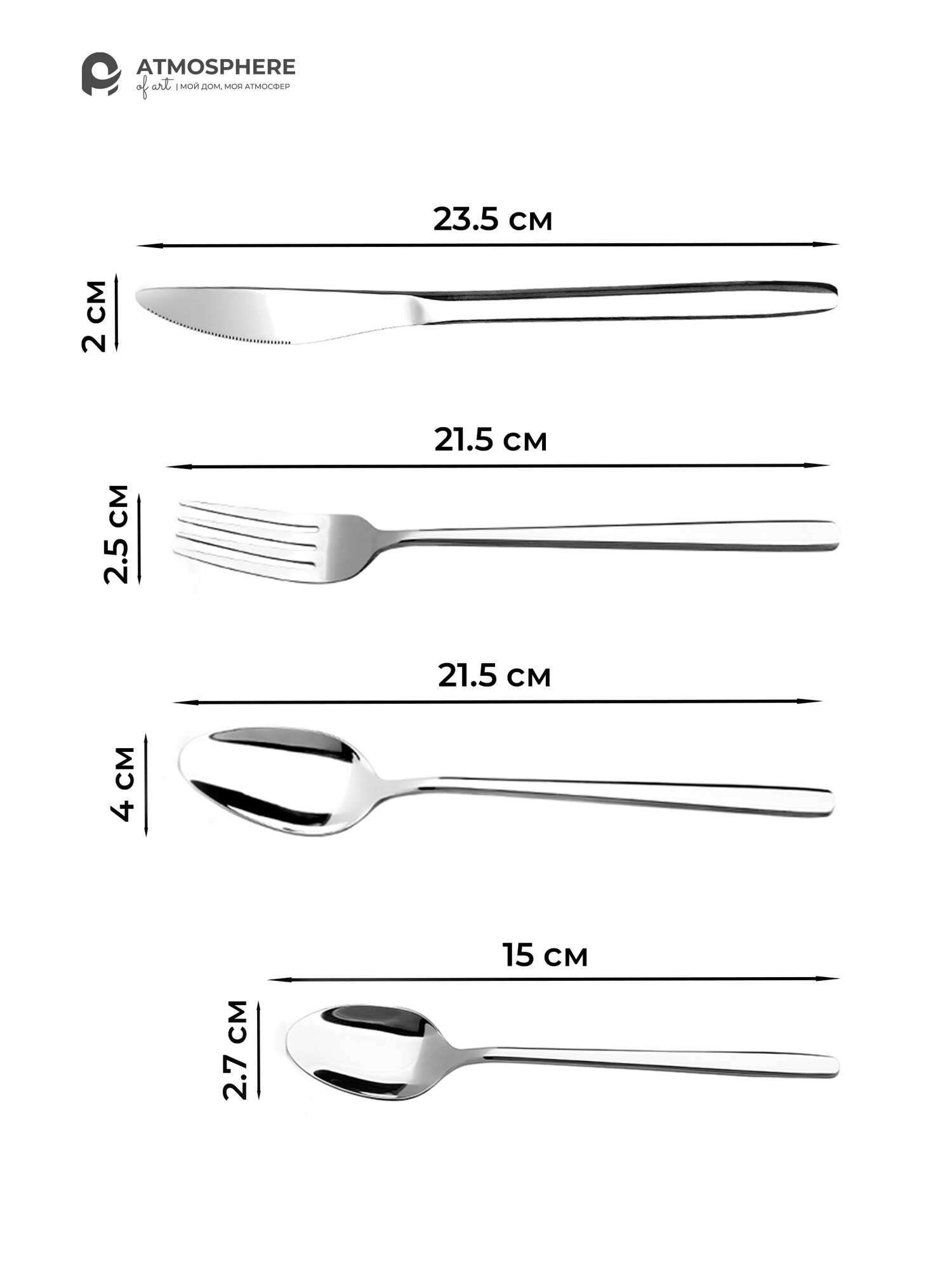 Отзывы на Набор столовых приборов Atmosphere of Art "Silver" / нерж. сталь/ 24 предмета