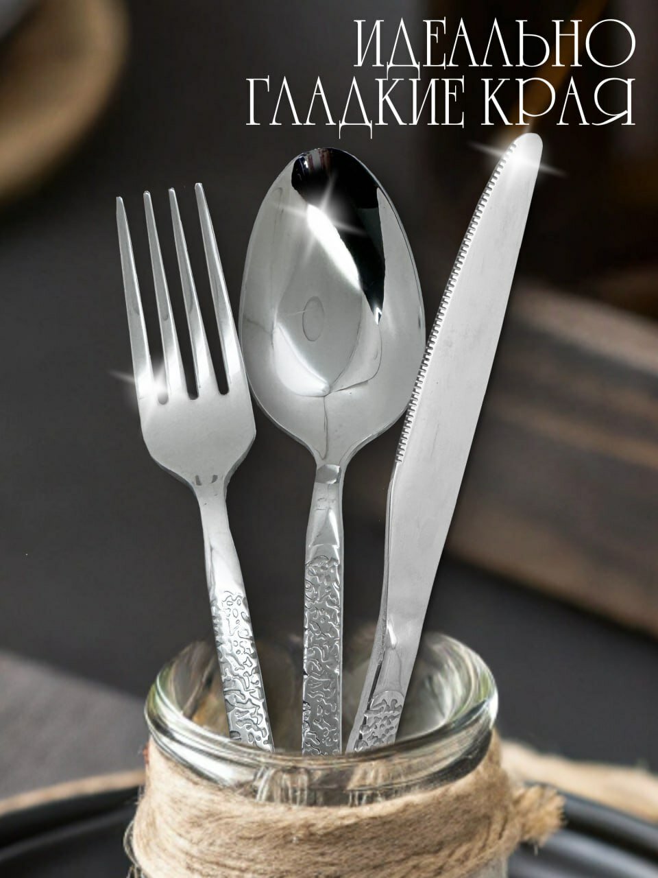 Набор столовых приборов "Необычная чеканка", 24 предмета на 6 персон, нержавеющая сталь информация: