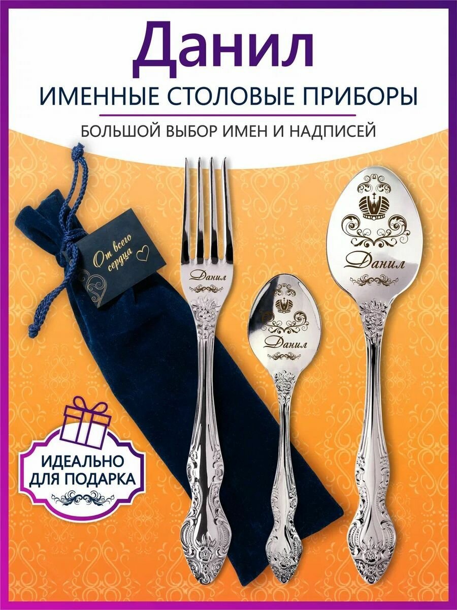 10 цен на Именные столовые приборы набор "Данил" из нержавеющей стали на 1 персону от "Pro100laser"