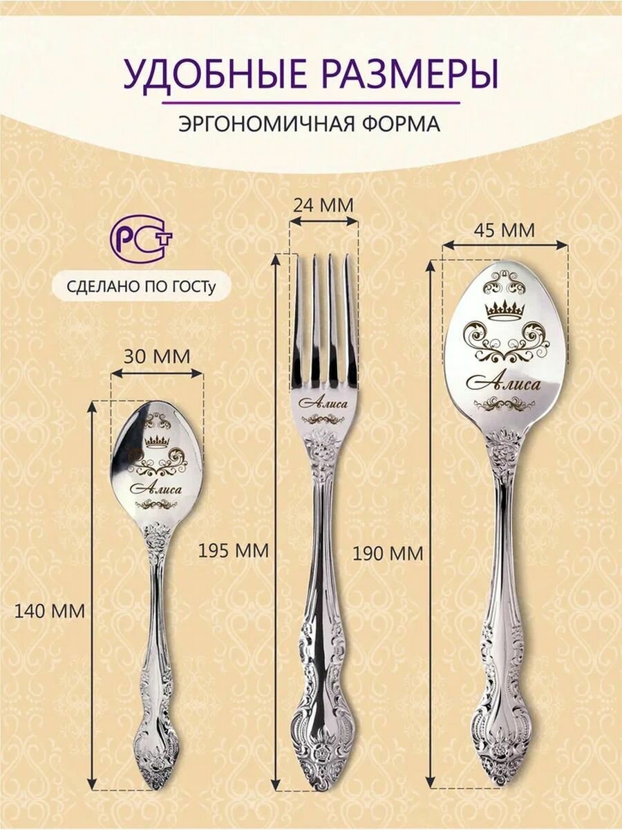 Именные столовые приборы набор "Алиса" из нержавеющей стали на 1 персону от "Pro100laser" информация: