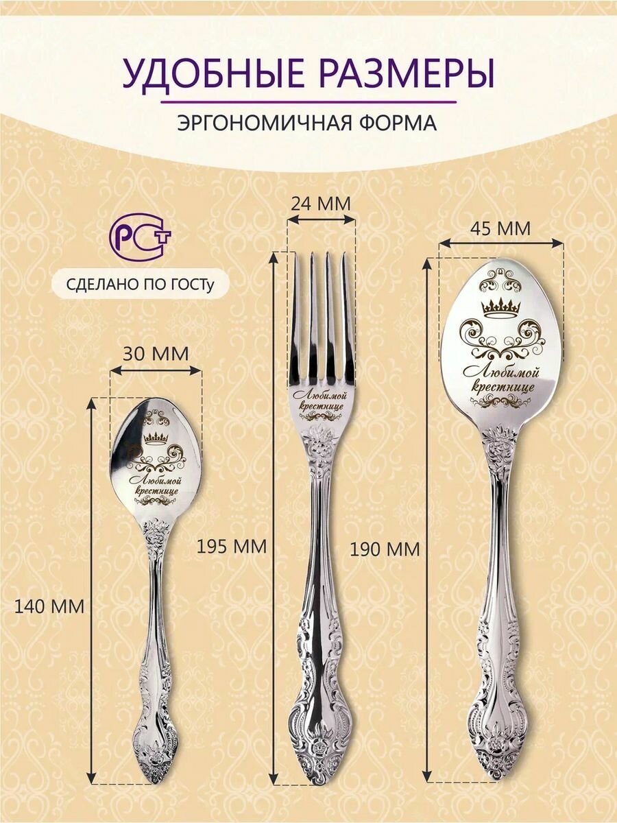 Отзывы на Именные столовые приборы набор "Любимой крестнице" из нержавеющей стали на 1 персону от "Pro100laser"