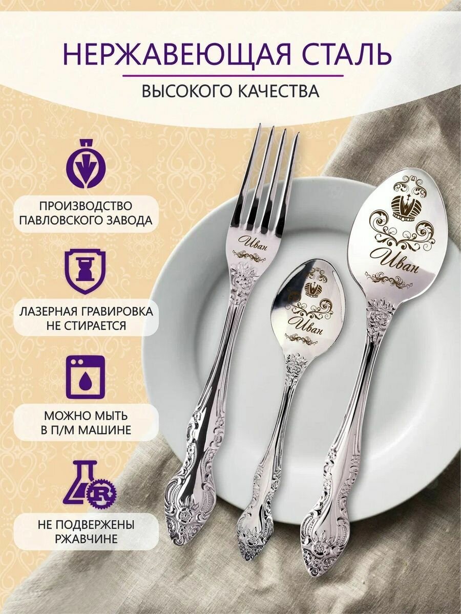 Именные столовые приборы набор "Иван" из нержавеющей стали на 1 персону от "Pro100laser" информация: