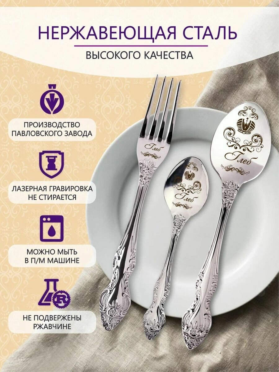 Именные столовые приборы набор "Глеб" из нержавеющей стали на 1 персону от "Pro100laser" информация: