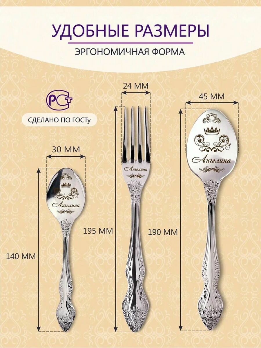 Отзывы на Именные столовые приборы набор "Ангелина" из нержавеющей стали на 1 персону от "Pro100laser"