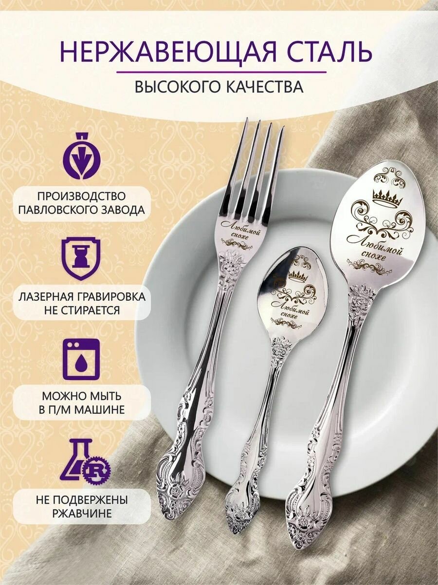 Отзывы на Именные столовые приборы набор "Любимой снохе" из нержавеющей стали на 1 персону от "Pro100laser"