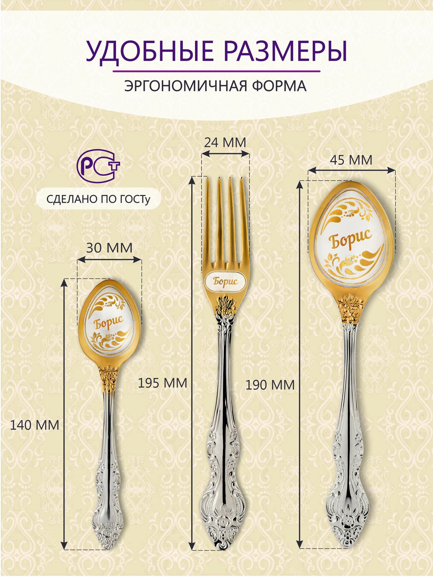 Именные столовые приборы набор "София" из нержавеющей стали на 1 персону от "Pro100laser"