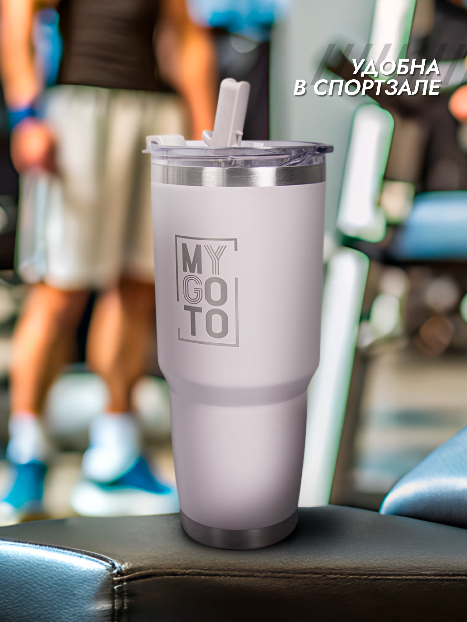 Отзывы на Термокружка Tumbler для автомобиля MY GO TO, нержавеющая сталь, 0.88л, с трубочкой, серый
