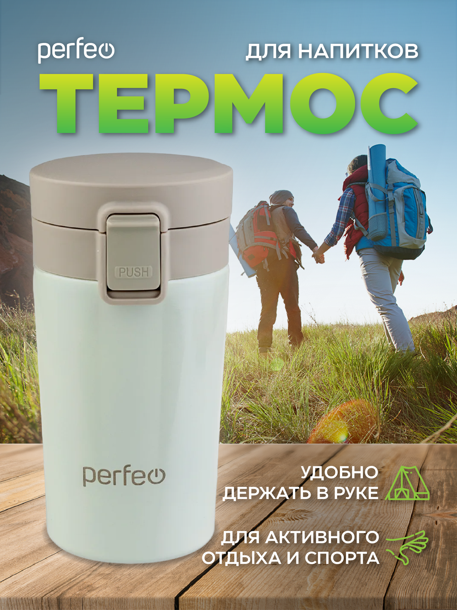 10 цен на Термокружка PERFEO для напитков с крышкой-поилкой, ситечком, объем 0,25 л, кремовый (PF_C3728)