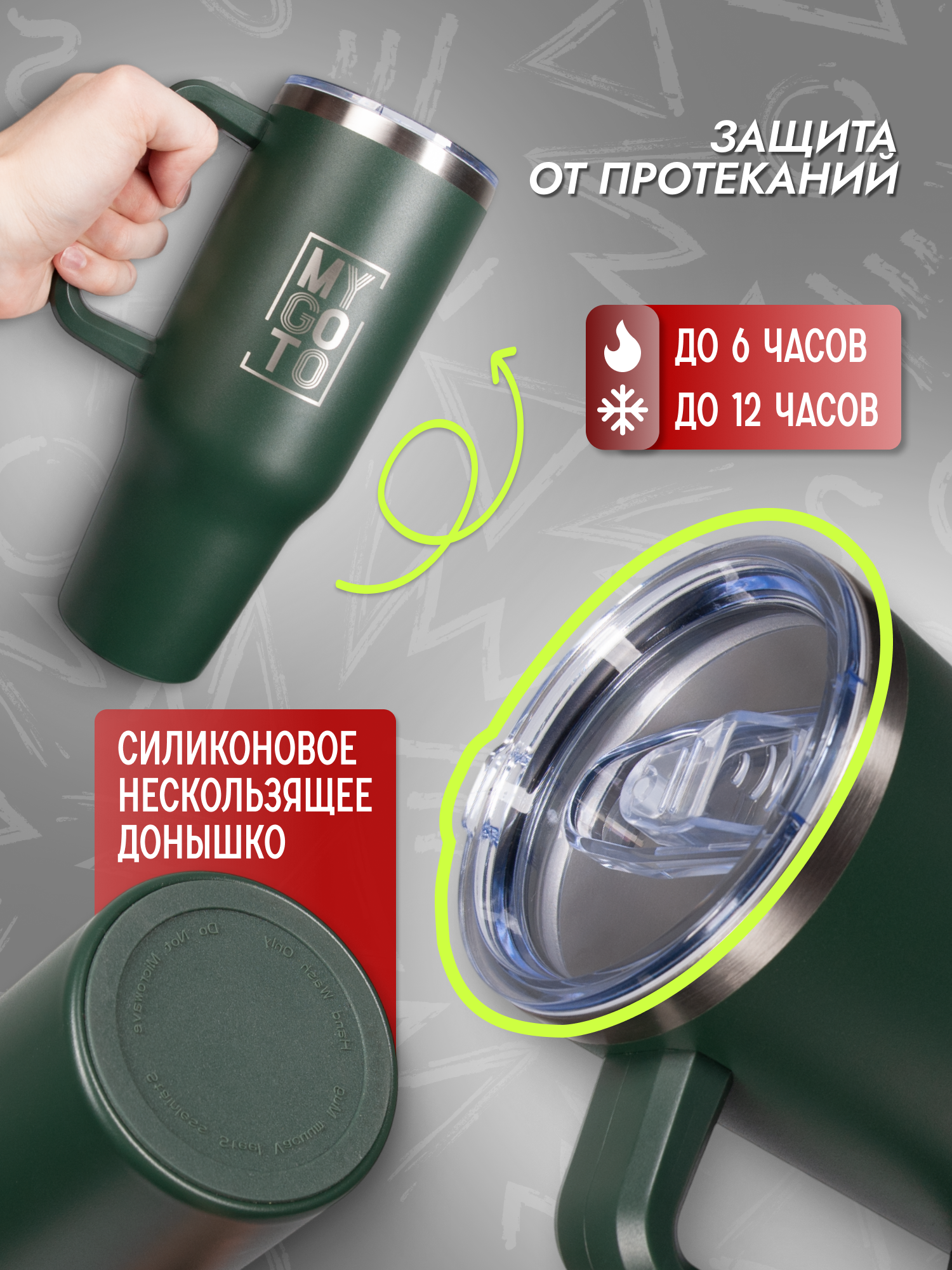 10 цен на Термокружка MY GO TO Tumbler, нержавеющая сталь, 1.18л, с ручкой, темно-зеленый