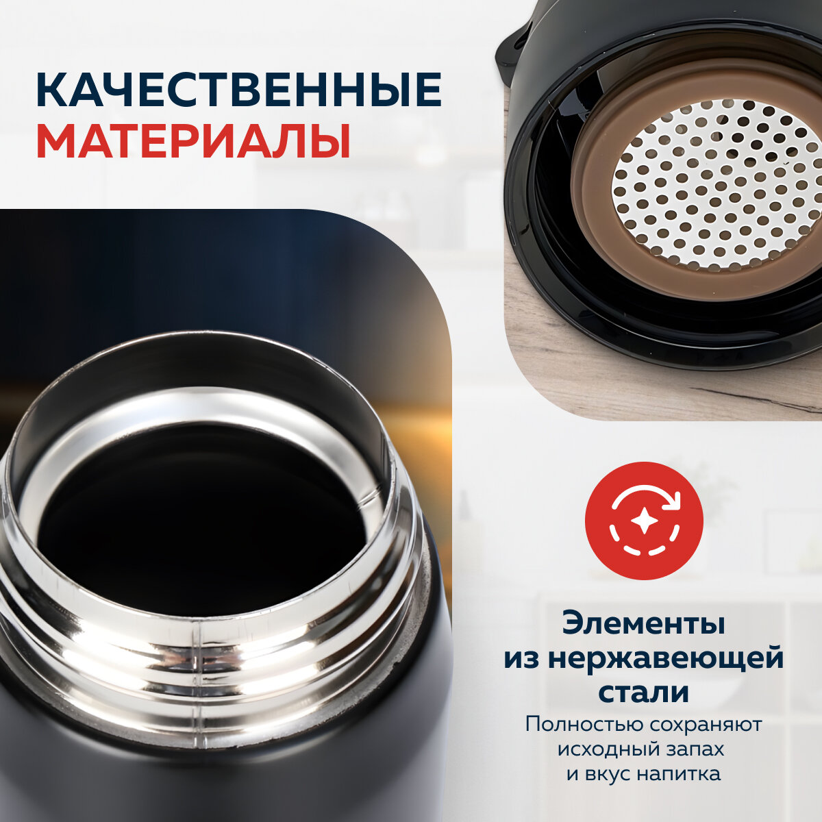 Термокружка Alpenkok AK-04819A, 480 мл, нержавеющая сталь, вакуумная колба с двойными стенками, черный информация: