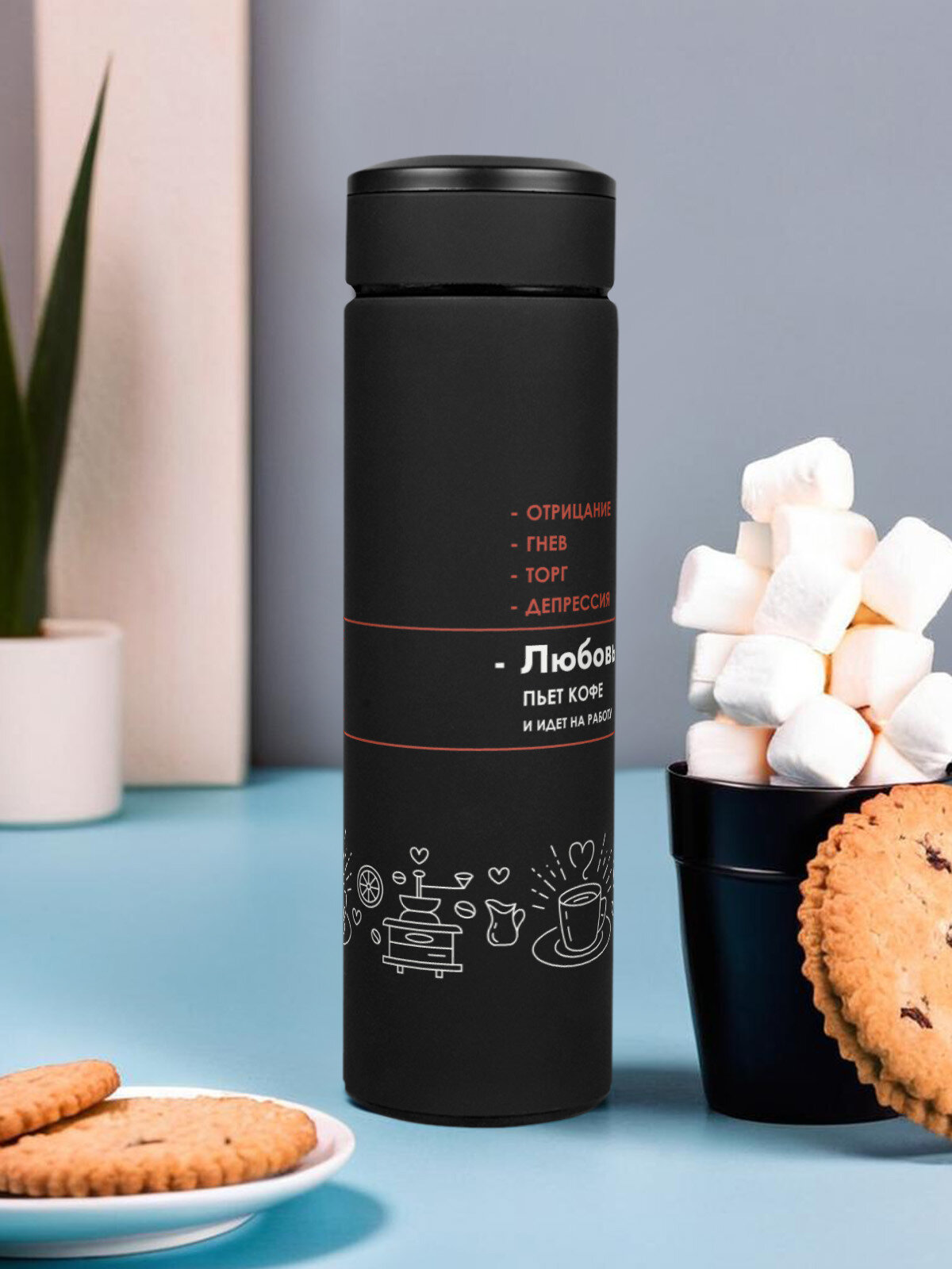 10 цен на Термос черный для чая вакуумный 0,5 л Любовь
