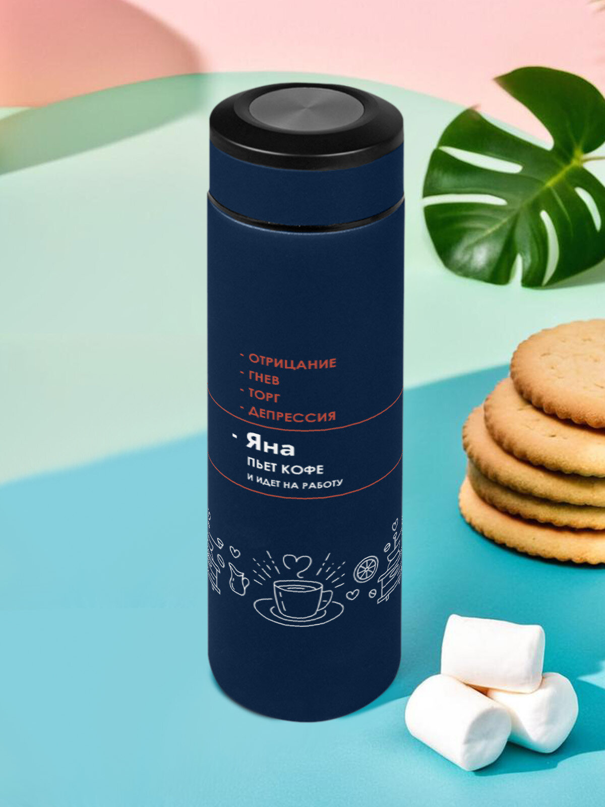 10 цен на Термос темно-синий для чая вакуумный 0,5 л Яна