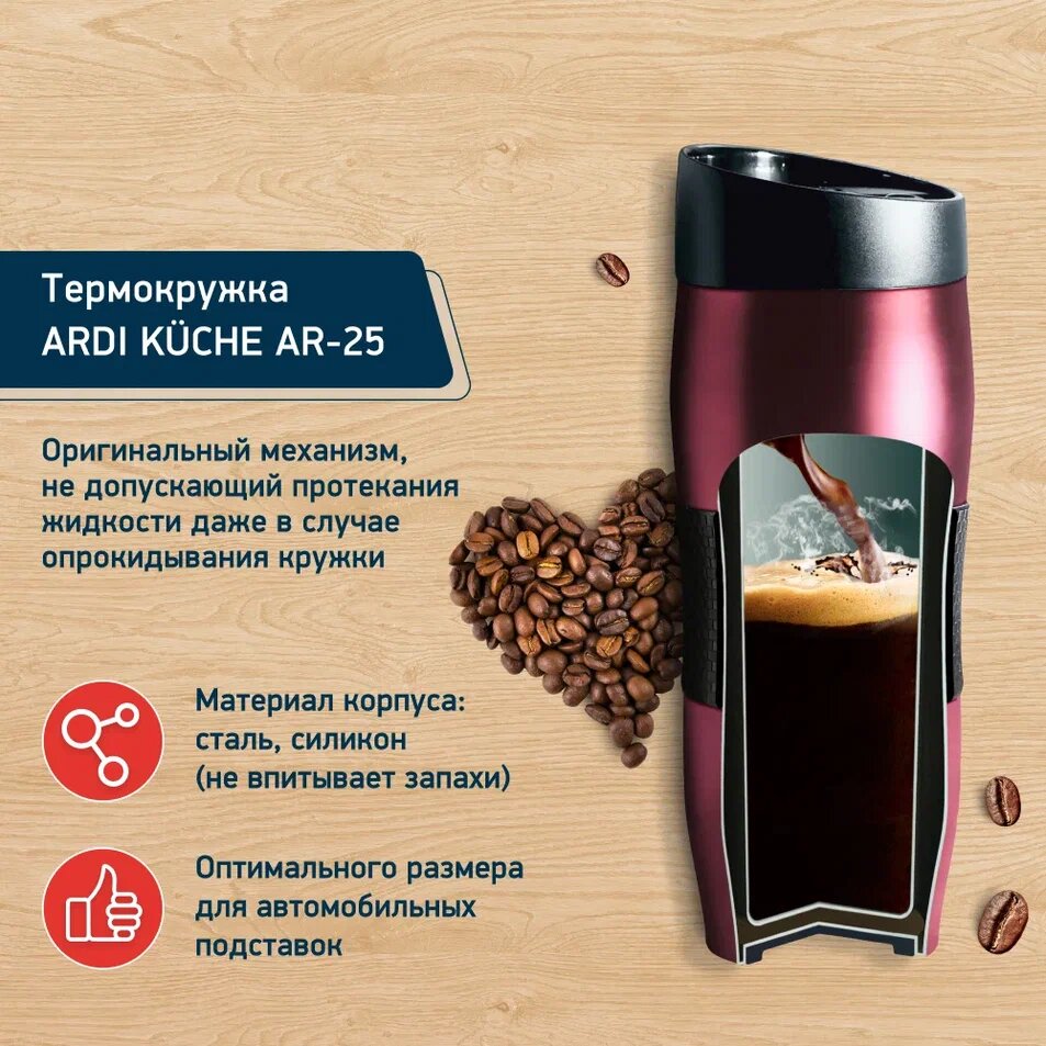 Отзывы на Термокружка ARDI Kuche AR-22, нержавеющая сталь, 400 мл, малиновая
