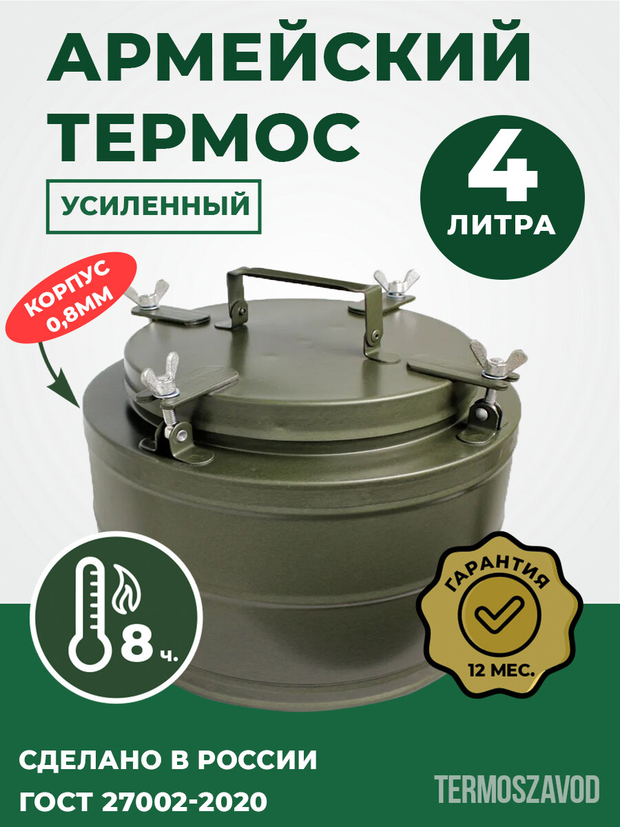 Отзывы на Термос армейский ТГ-4, 4 л, широкое горло, для еды и супа, нержавеющая сталь, сохранение тепла до 8 часов