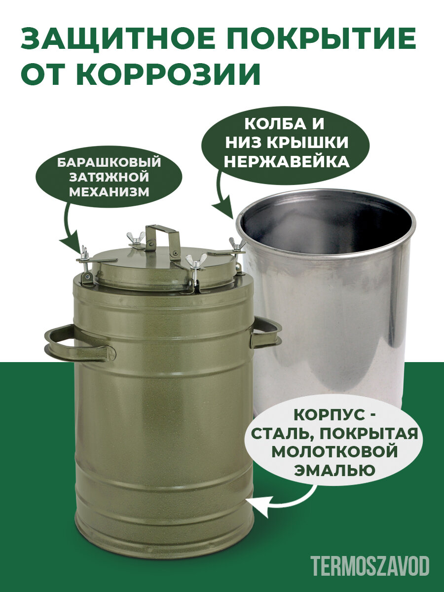 Термос армейский с широким горлом на 18 литров, ТГ-18. Для еды и напитков. информация: