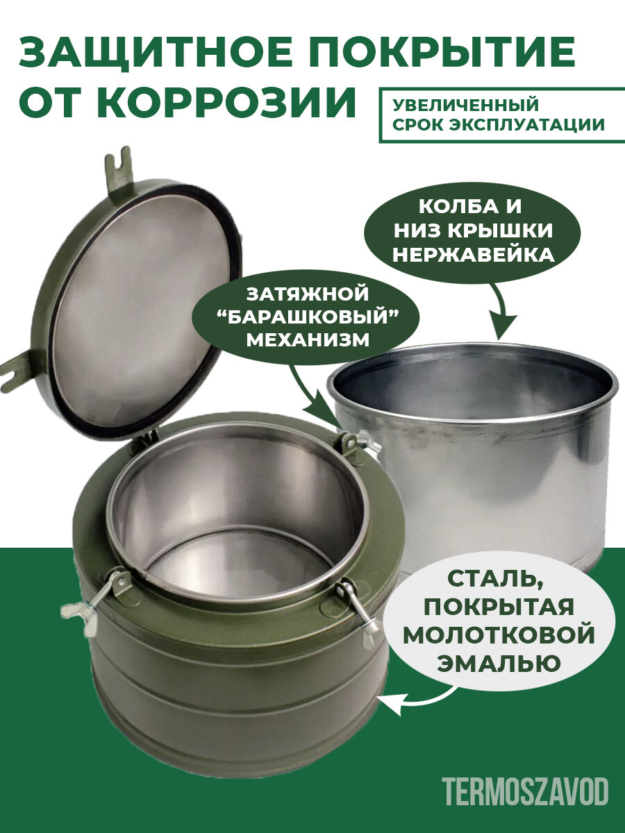 Отзывы на Термос армейский ТГ-9, 9 л, широкое горло, для еды и супа, нержавеющая сталь, сохранение тепла до 8 часов