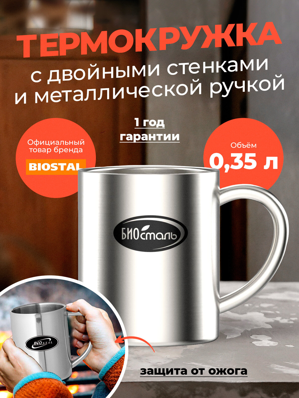 Термокружка Биосталь/Biostal с двойными стенками и металлической ручкой (0.35), NM-350C информация: