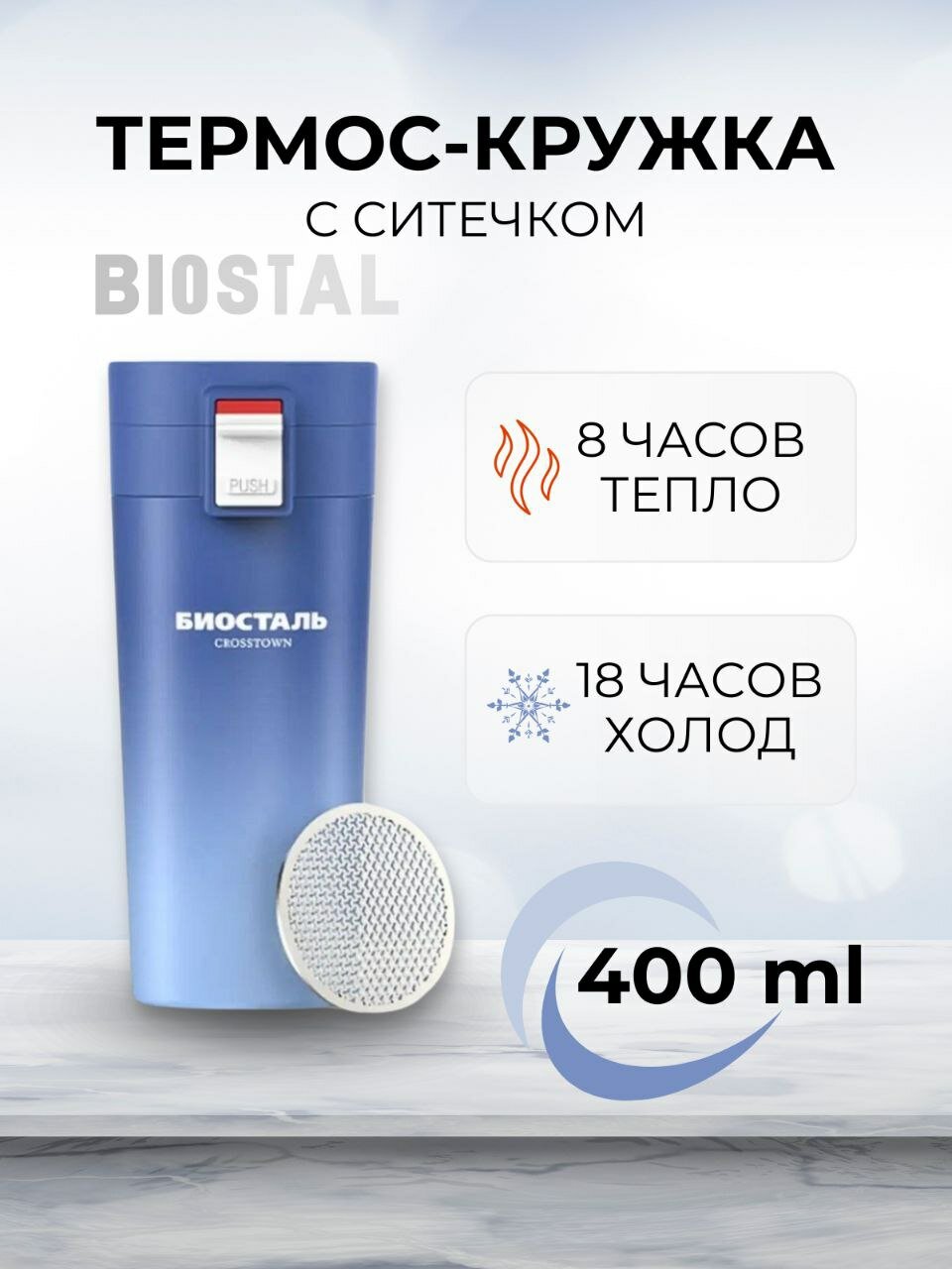Термокружка BIOSTAL, для кофе и чая, с ситечком, вакуумная, 400мл информация: