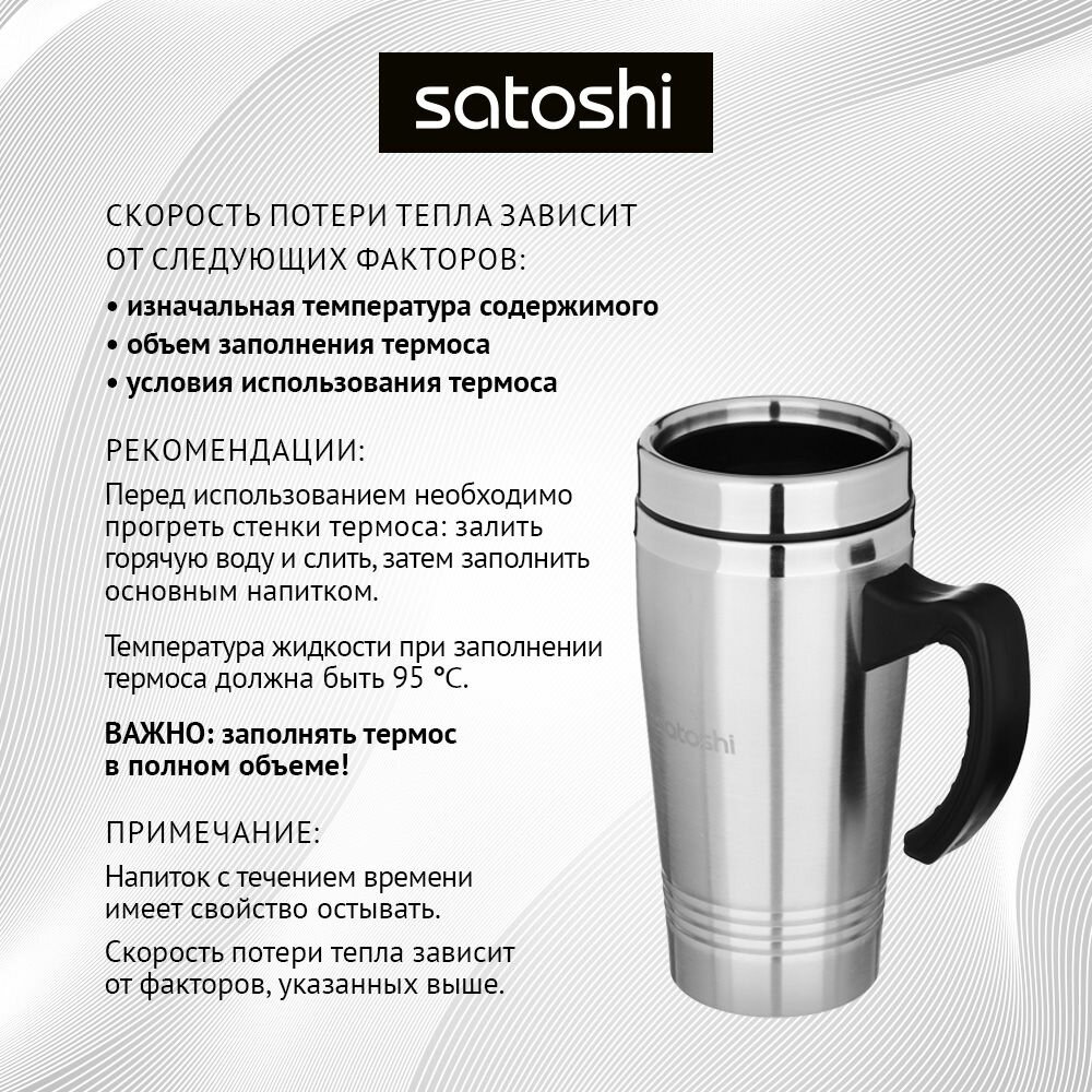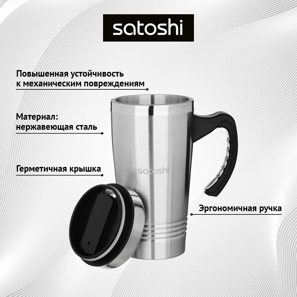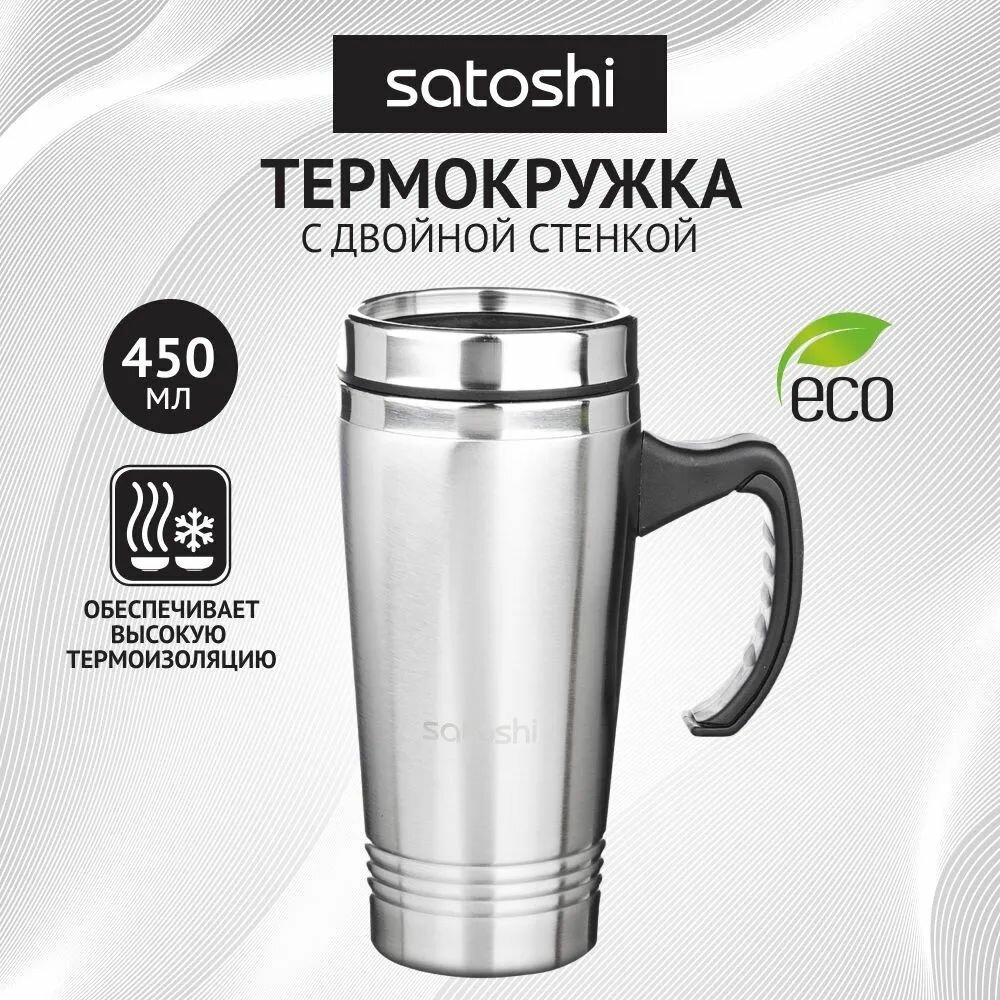Термокружка 450 мл SATOSHI, вакуумная из нержавеющей стали, термос для чая, нержавейка информация: