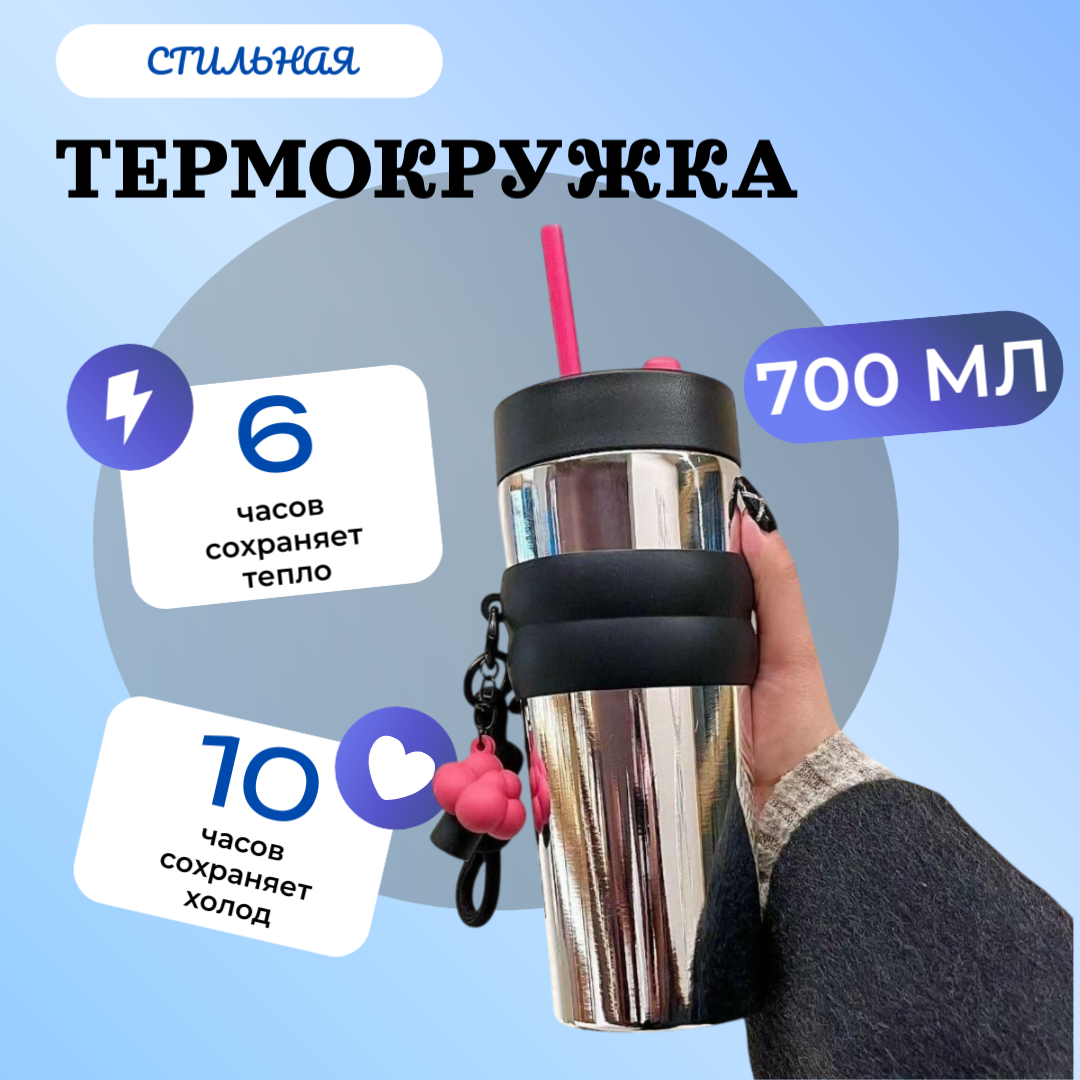 Термокружка с трубочкой для холодных и горячих напитков 700 мл. информация: