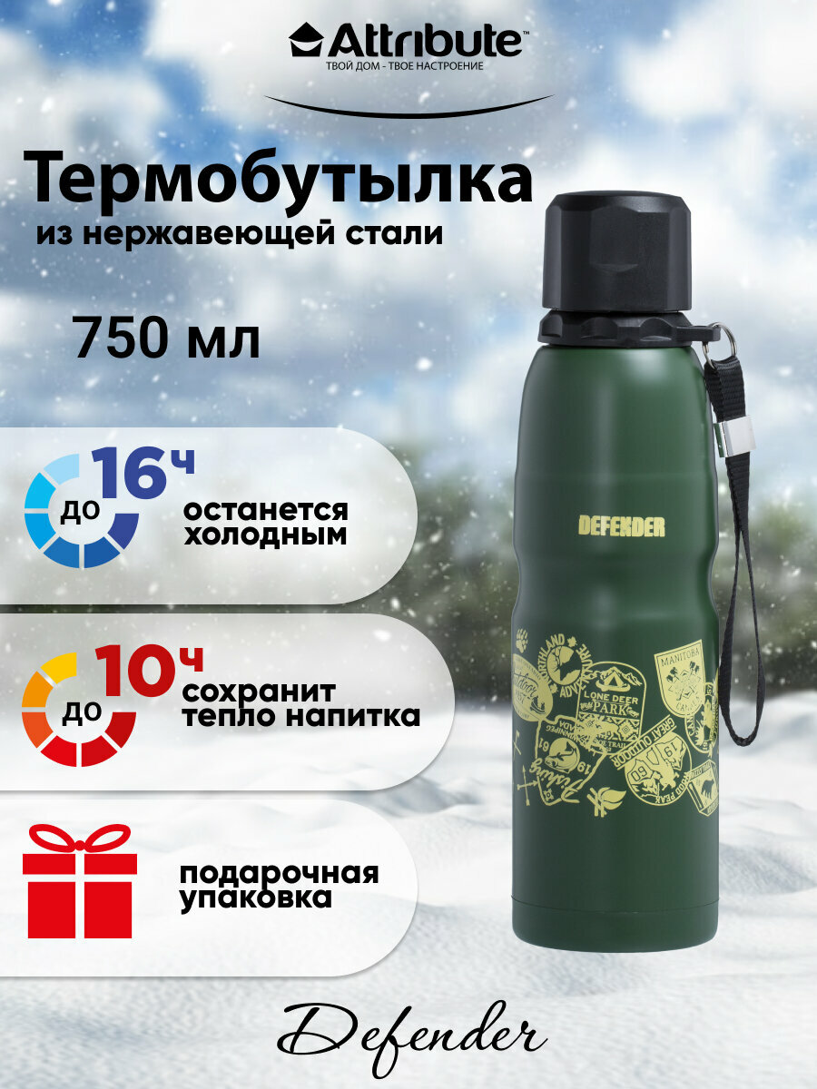 10 цен на Термобутылка ATTRIBUTE VAC.FLAS DEFENDER 0.75л темно-зеленый