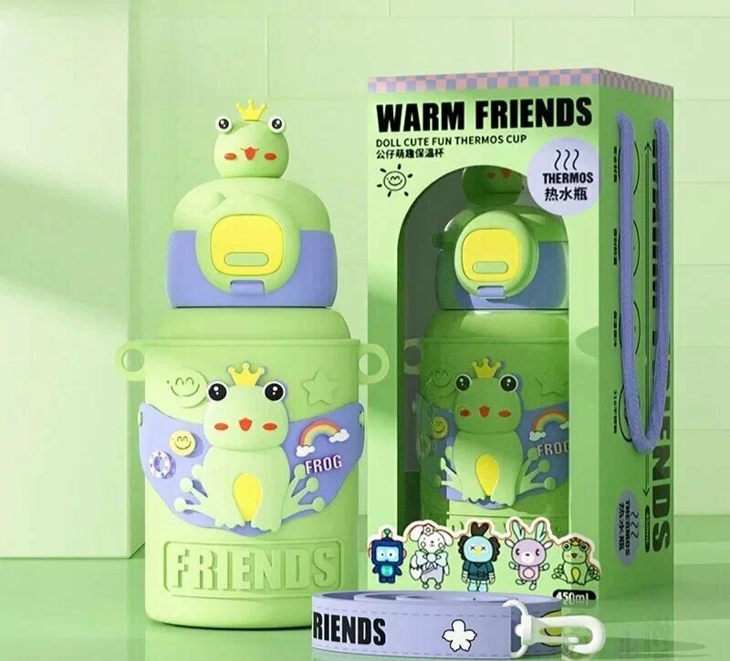 Отзывы на Детский термос-бутылка Царевна-лягушка. C силиконовым носиком и ремешком 450мл. (Зеленый)