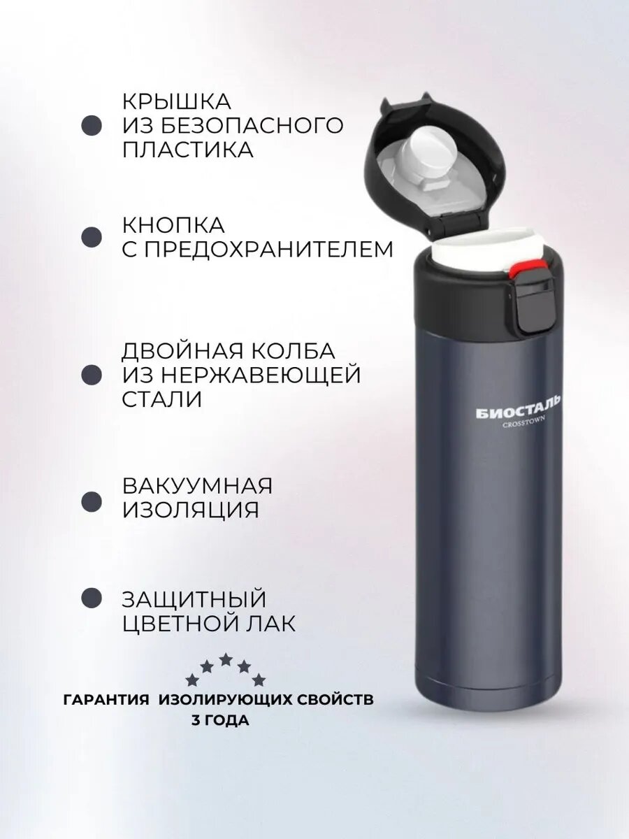 Отзывы на Термос-термокружка Биосталь, для чая/кофе, 420 мл, ударопрочная, вакуумная, синий