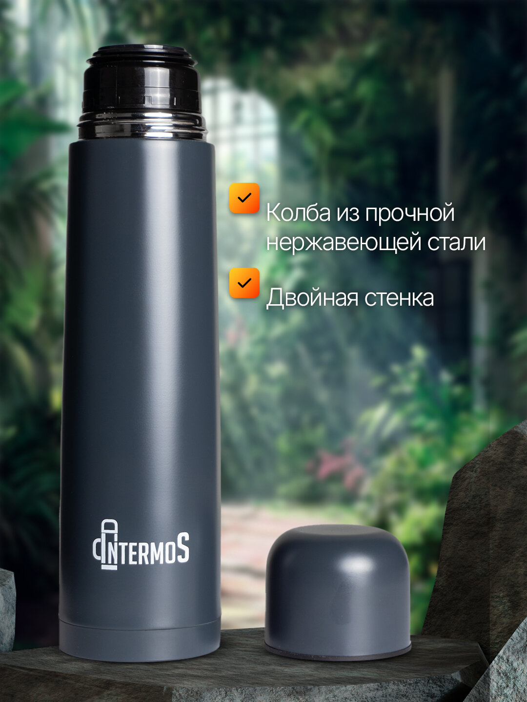 Отзывы на Термос 1 литр IntermoS классический с узким горлом, с кнопкой, нержавеющая сталь, серый