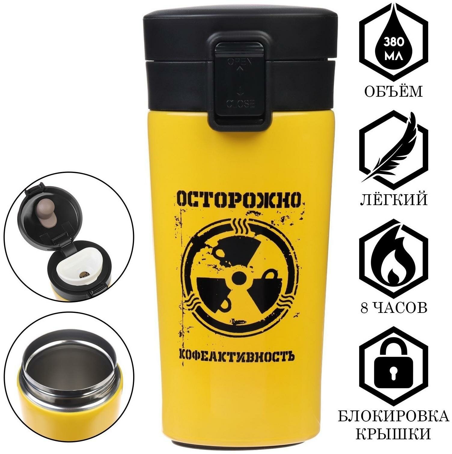10 цен на Термокружка, 380 мл, Style "Осторожно кофеактивность", сохраняет тепло 8 ч, с ситечком