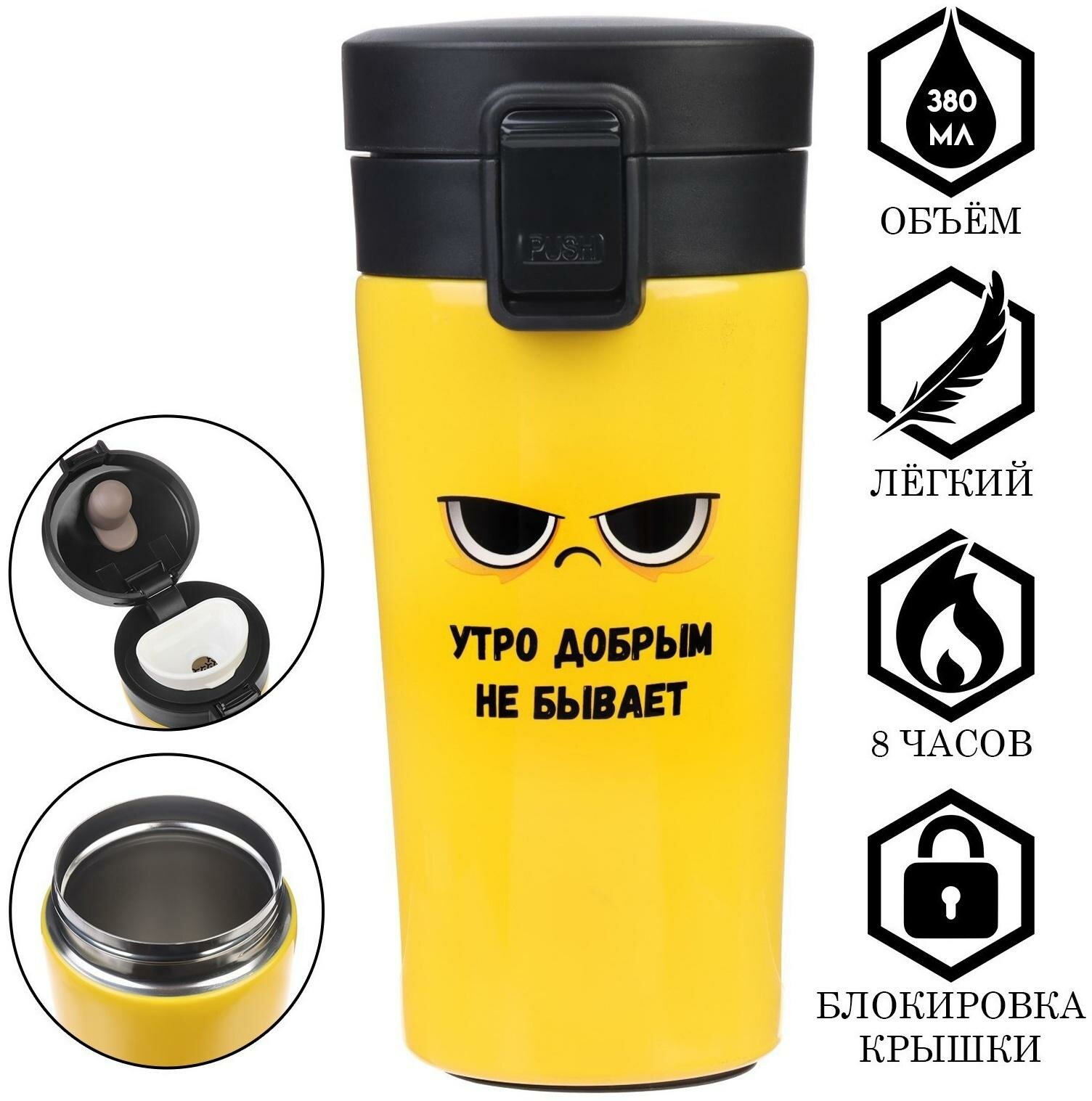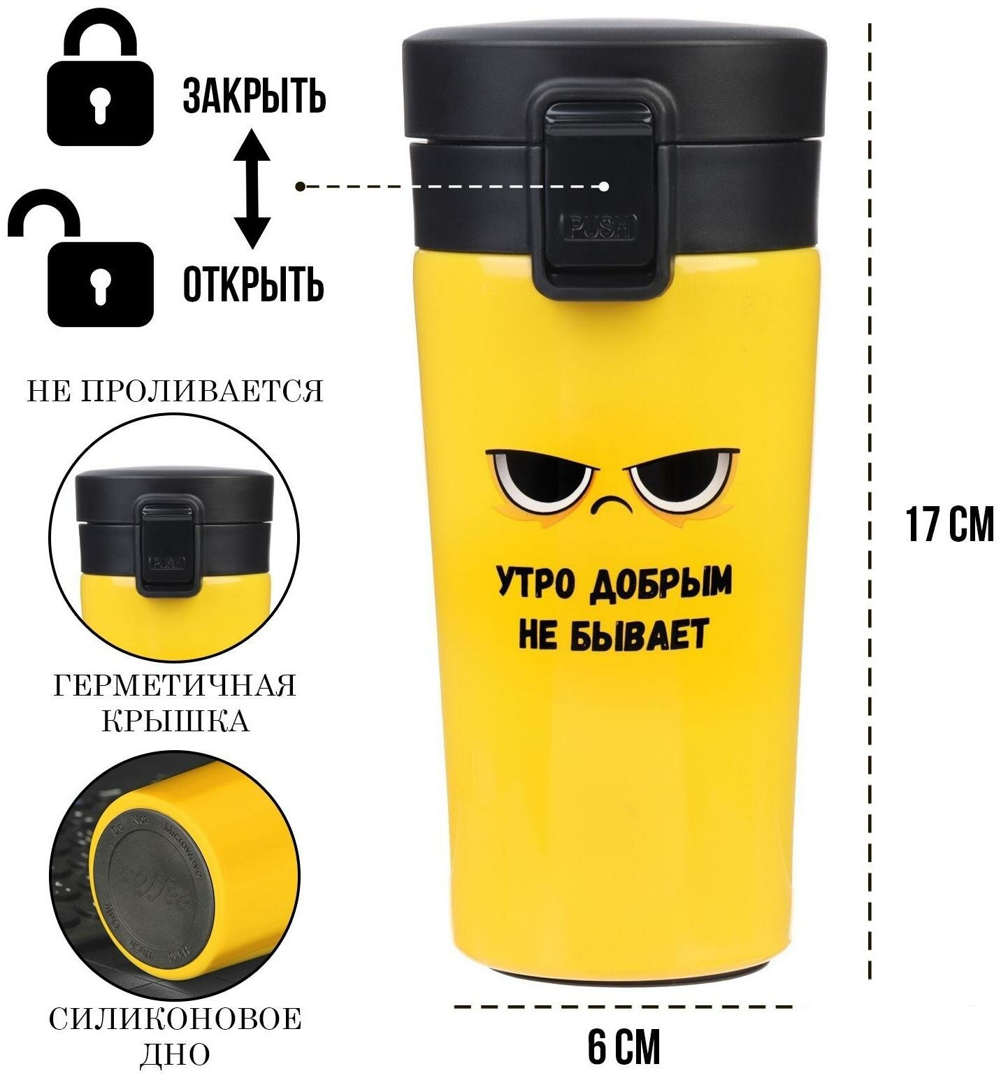 Отзывы на Термокружка, 380 мл, Style "Утро добрым не бывает", сохраняет тепло 8 ч, с ситечком