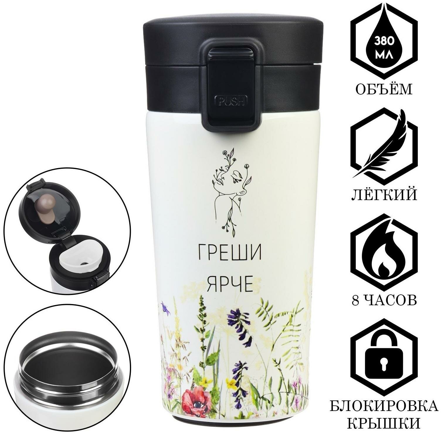 10 цен на Термокружка, 380 мл, Style "Греши ярче", сохраняет тепло 8 ч, с ситечком