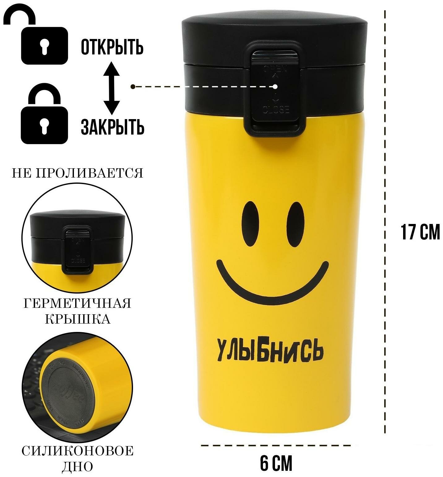 Термокружка «Улыбнись», 380 мл, сохраняет тепло 8 ч, с ситечком информация: