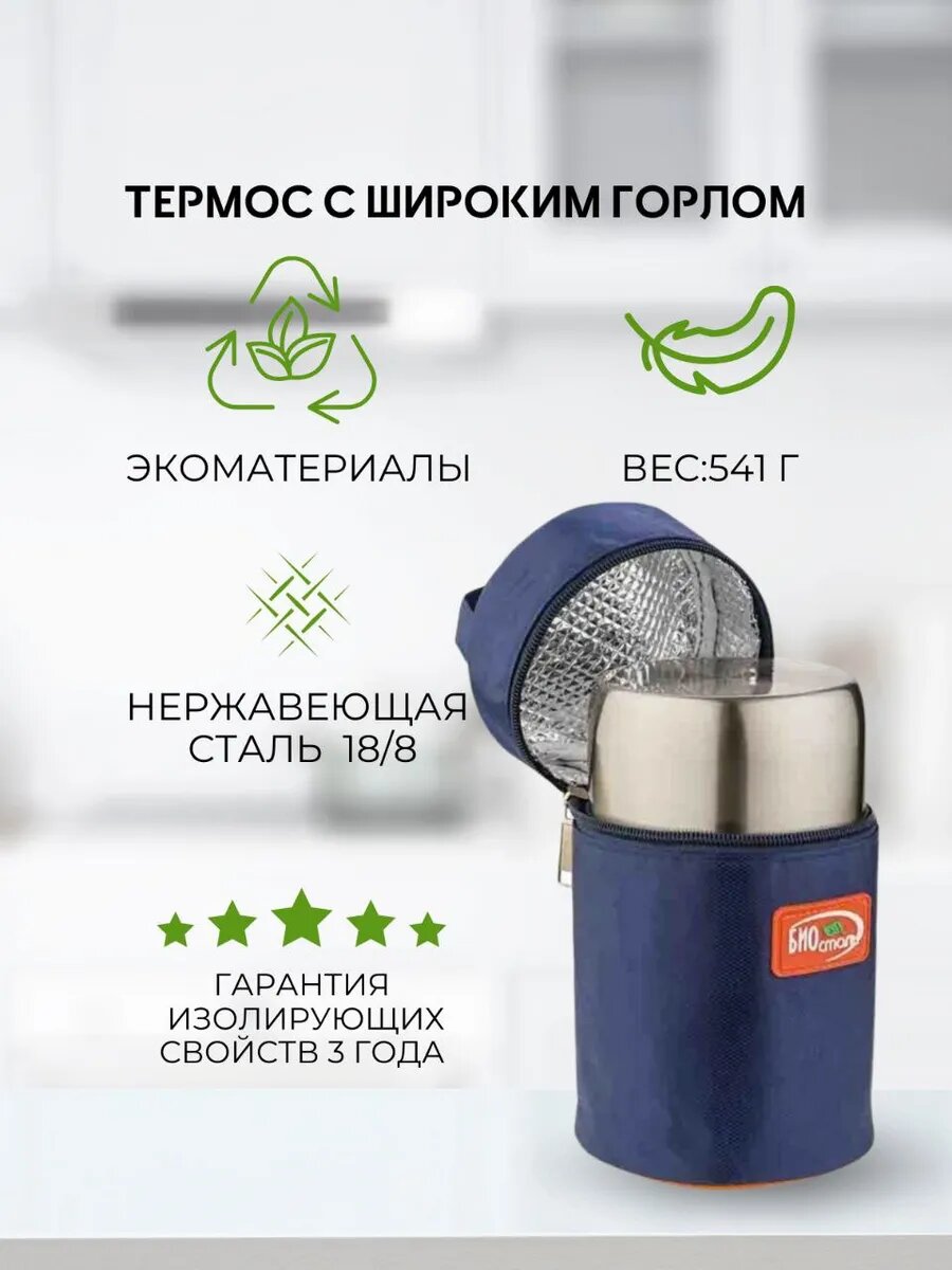 Термос для еды Биосталь, широкое горло, с термочехлом, 0,8 л информация: