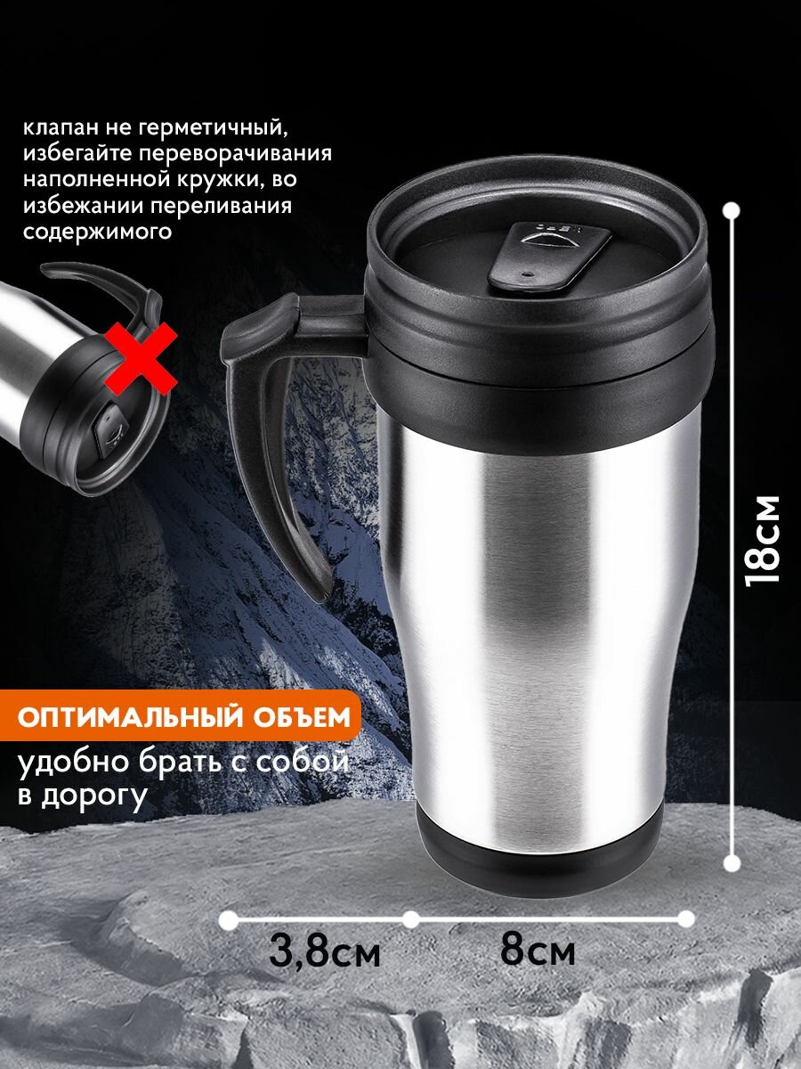 Металлическая кружка походная, не герметичная, пластик объемом 450 мл информация: