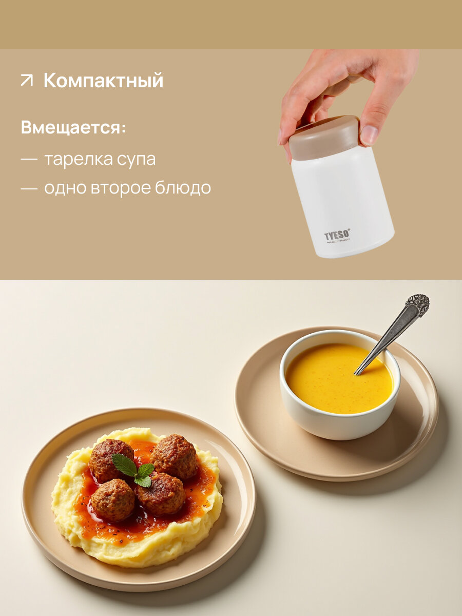 Отзывы на Термос, для еды, с широким горлом, мини, детский, нержавеющая сталь, 280мл, бежевый