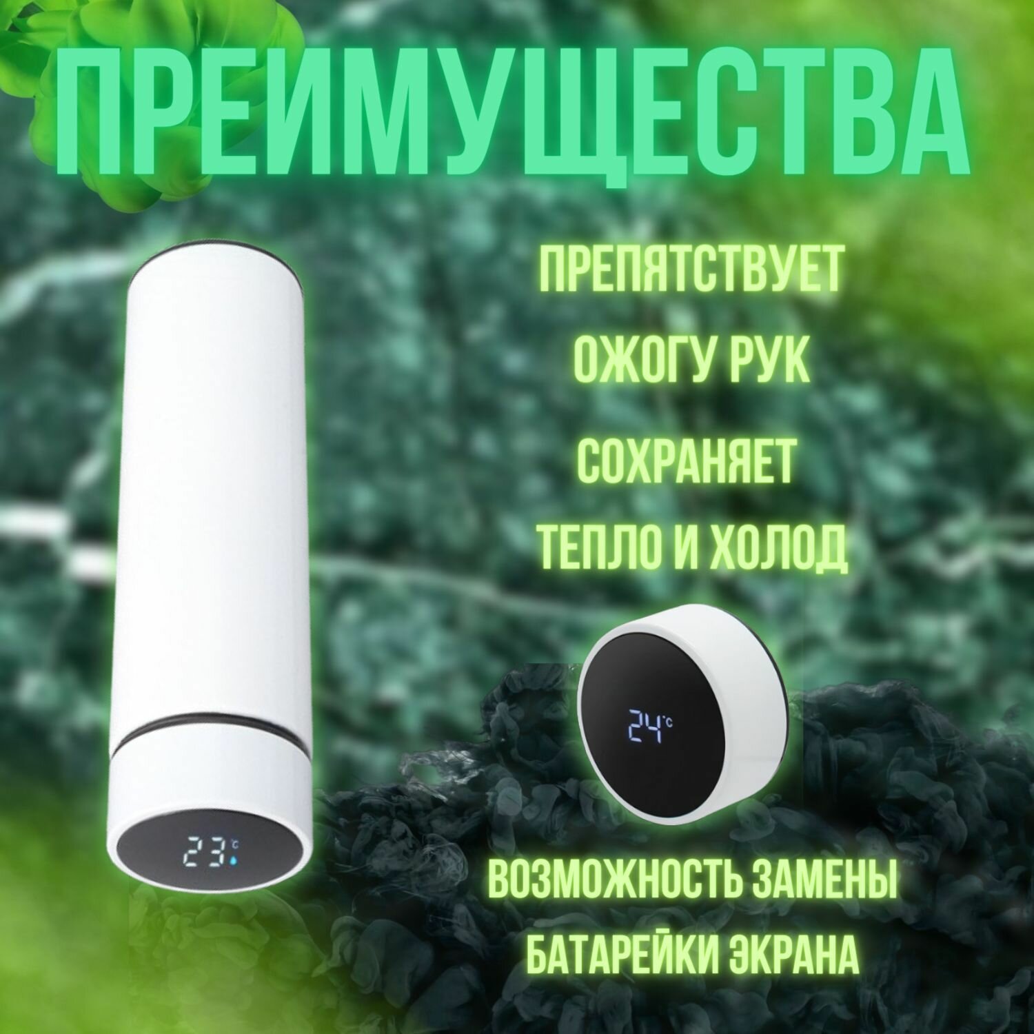 10 цен на Умный термос с датчиком температуры, термокружка для кофе и чая черная (500мл)