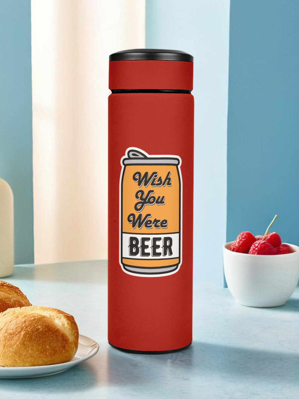 10 цен на Термос красный для чая вакуумный 0,5 л. с принтом "Пиво здесь"