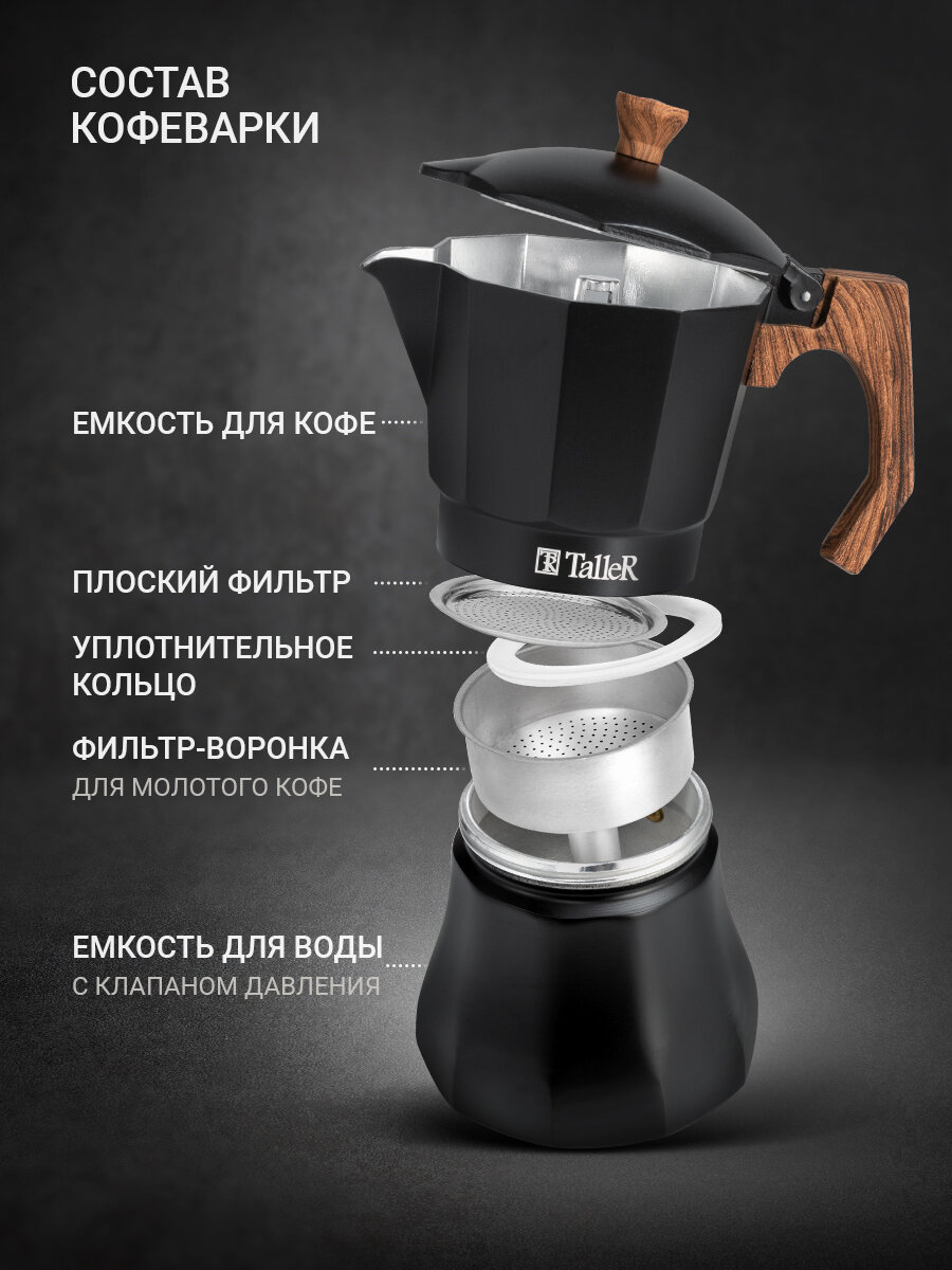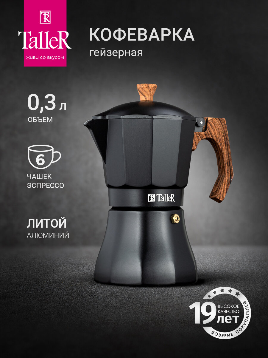 10 цен на Кофеварка гейзерная TalleR TR-98205 300 мл, из литого алюминия