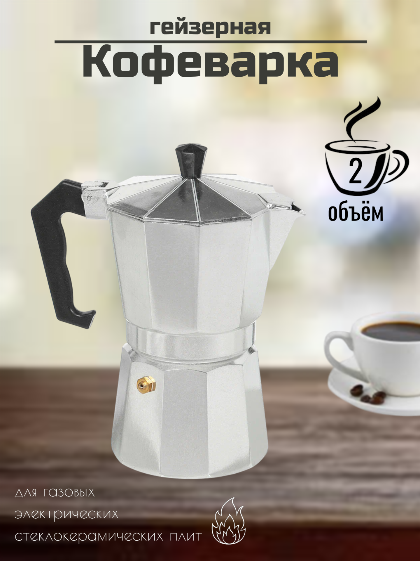 10 цен на Гейзерная кофеварка 150мл, на 2 чашки, ненагревающаяся ручка
