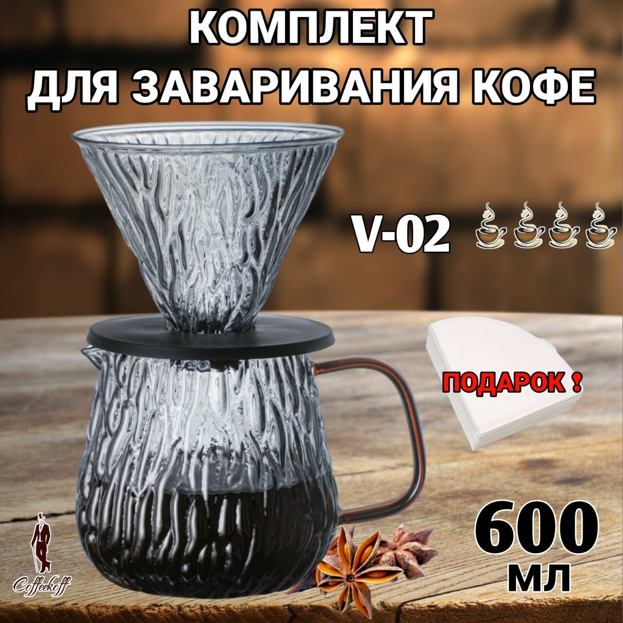 Набор для заваривания кофе, Воронка для кофе, чайник-сервер, стекло "Орех" информация: