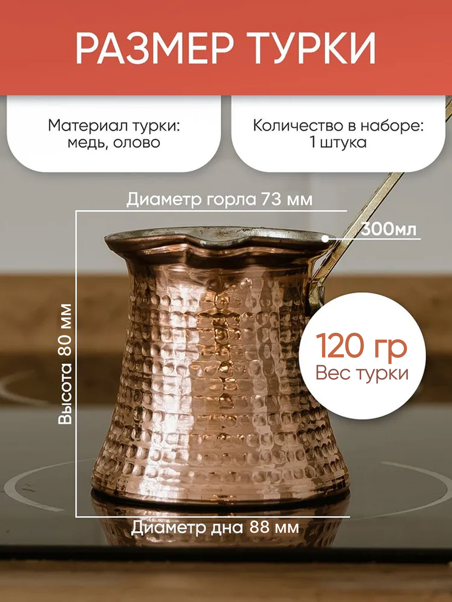 Турка медная для кофе для варки кофе джезва 300 мл информация: