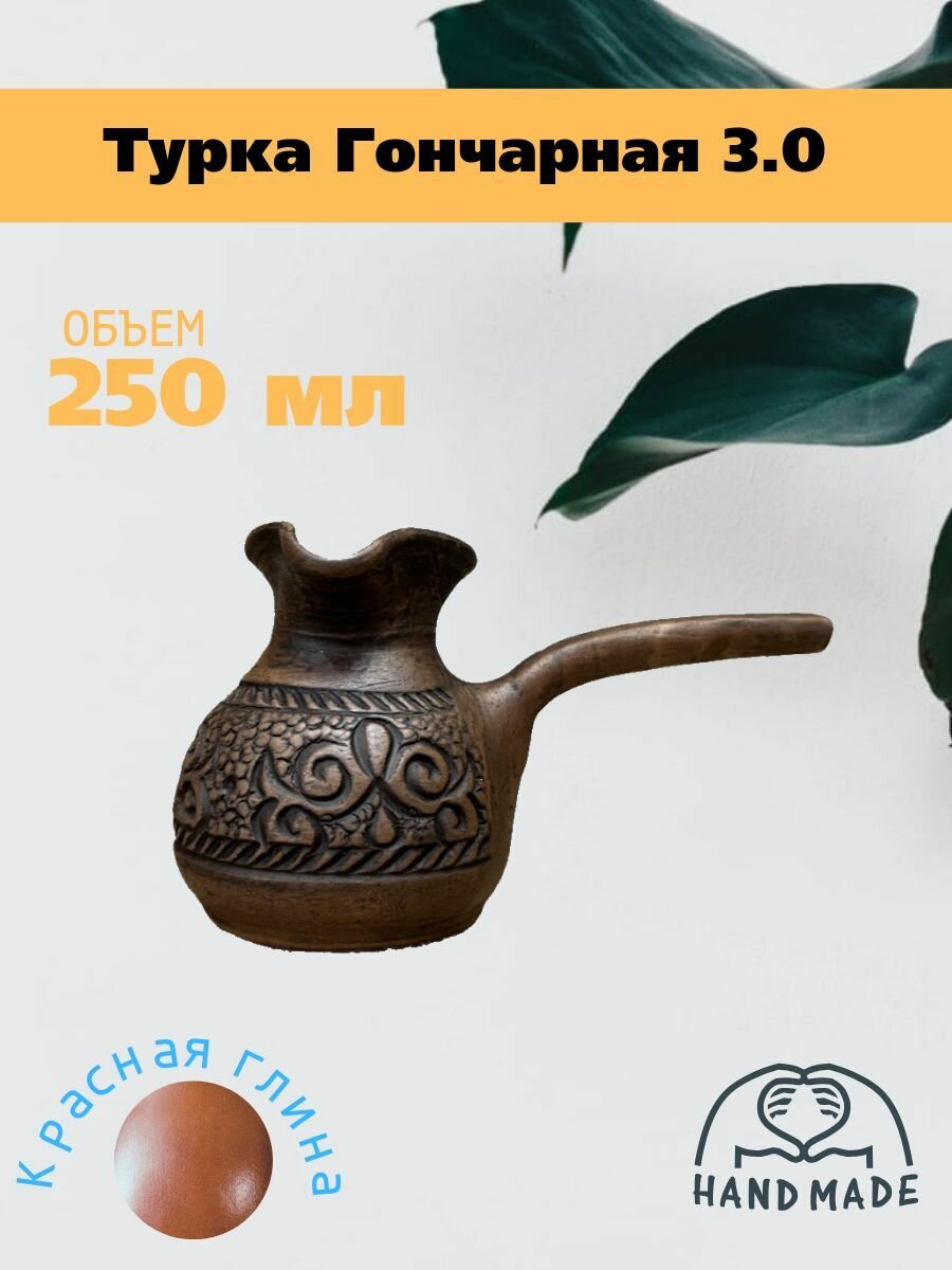 Турка "Гончарная 3.0", лощеная красная глина, мах 250 мл. информация: