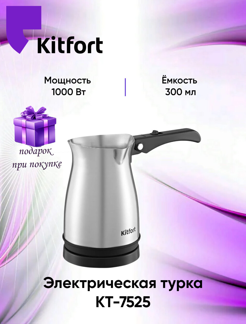 10 цен на Турка Kitfort КТ-7525, электрическая, мощность 1000 Вт, на 300 мл, съемная, со складной ручкой, серый металлик