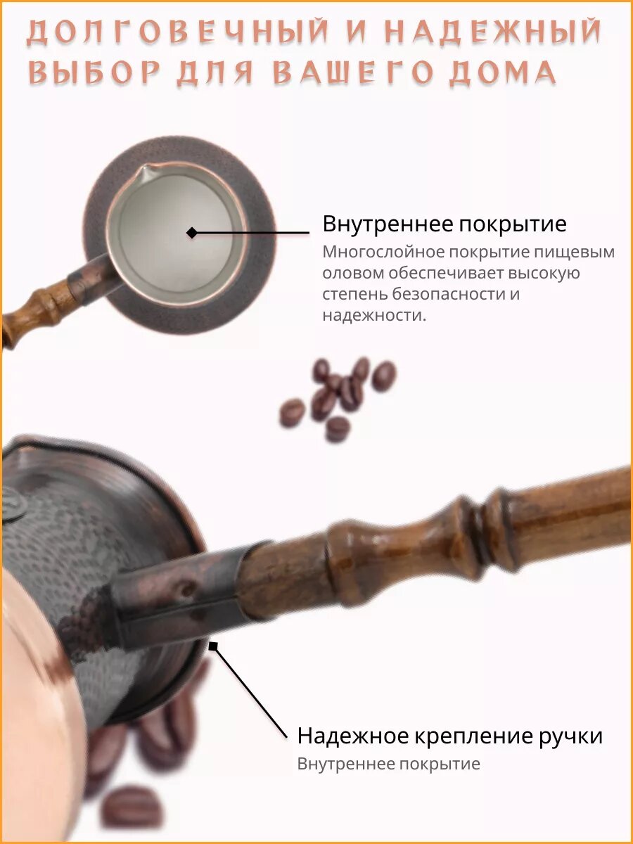 Турка для кофе медная цельная 230 мл информация: