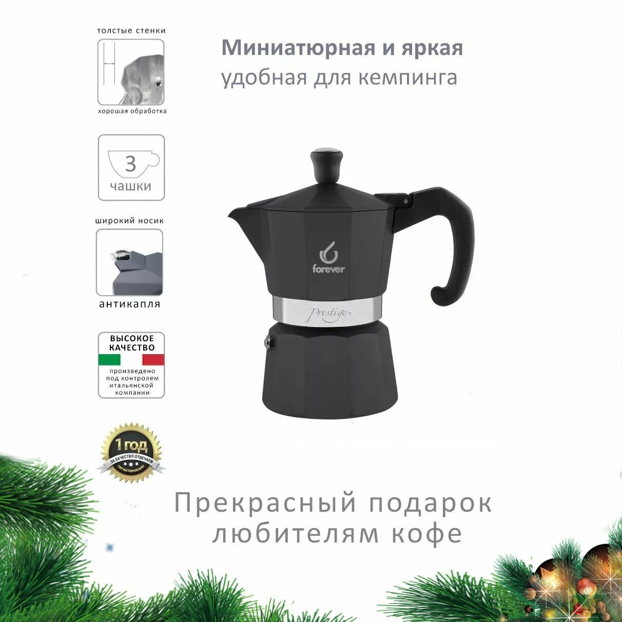Гейзерная кофеварка алюминиевая MOKA PRESTIGE на 3 чашки информация: