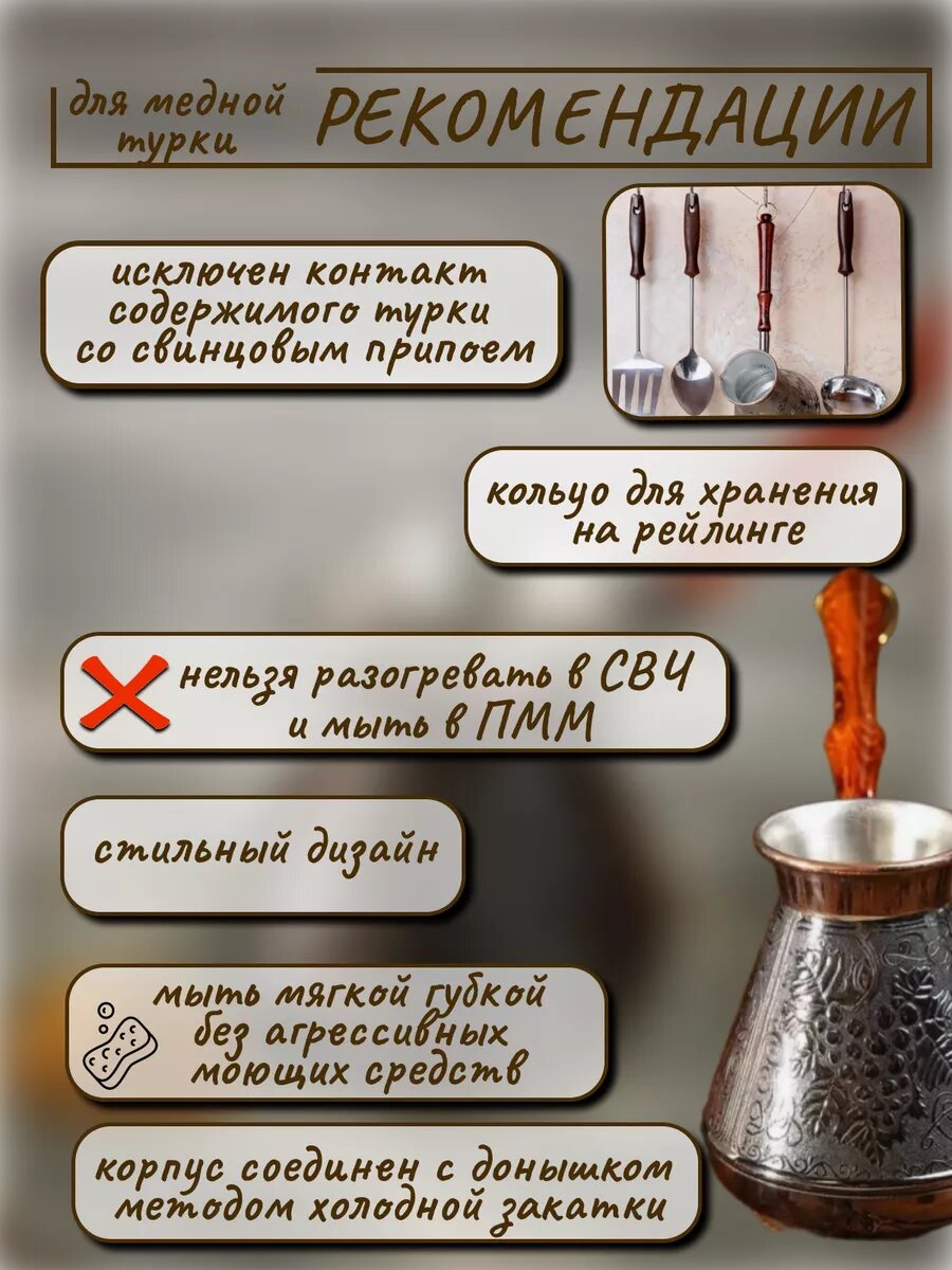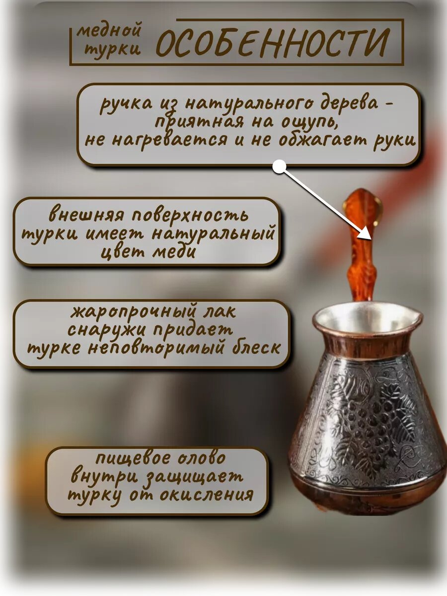 Турка для приготовления кофе, медная, в восточном стиле 540мл информация: