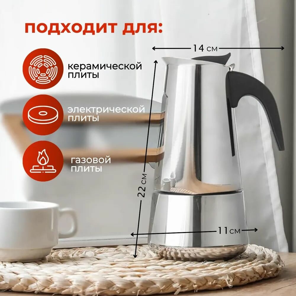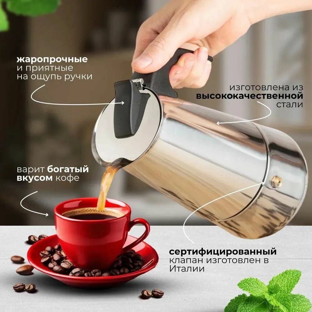 10 цен на Гейзерная кофеварка из нержавеющей стали на 9 чашек эспрессо, 450 мл