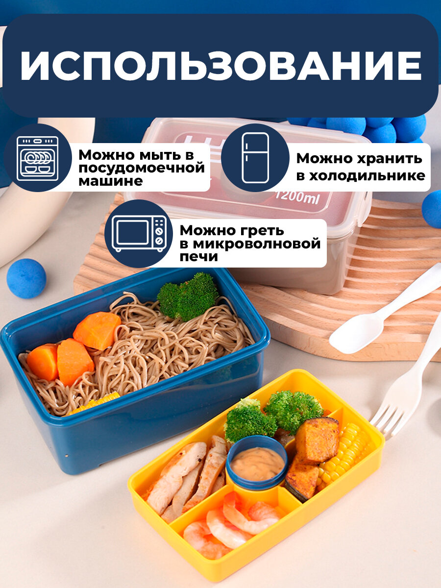 Ланч бокс SiNail, контейнер с приборами для еды, двухуровневый, с соусницей, 1200 мл информация:
