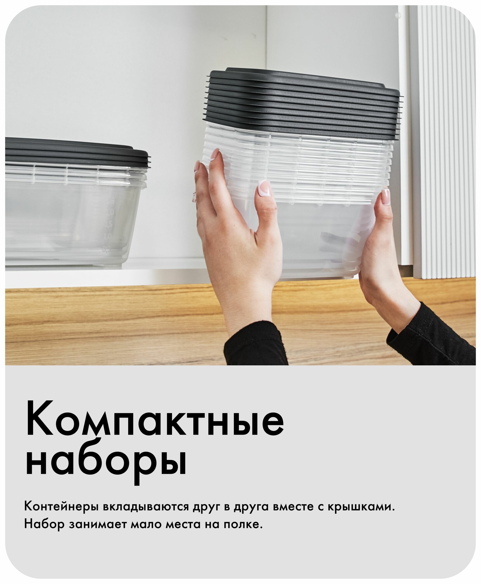 Набор контейнеров «Гурман», Альт-Пласт, графит, 1,5лх8 (8шт) 1 066 ₽