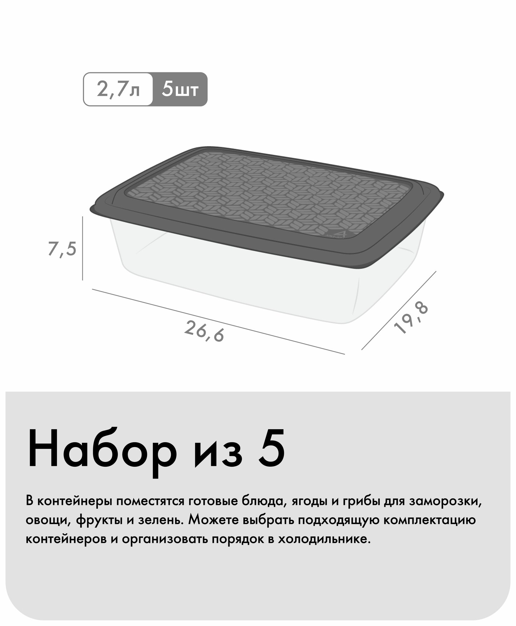 Набор контейнеров «Гурман», Альт-Пласт, графит, 2,7лх5 (5шт) информация:
